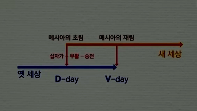 '옛 세상이 끝나고 메시아의 오심으로 이제 새로운 세상이 온다' 맞는 말같죠.