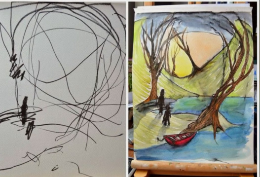 어떤 어린애가 그림을 그리고, 아니 그림이 아니라 낙서를 하고,